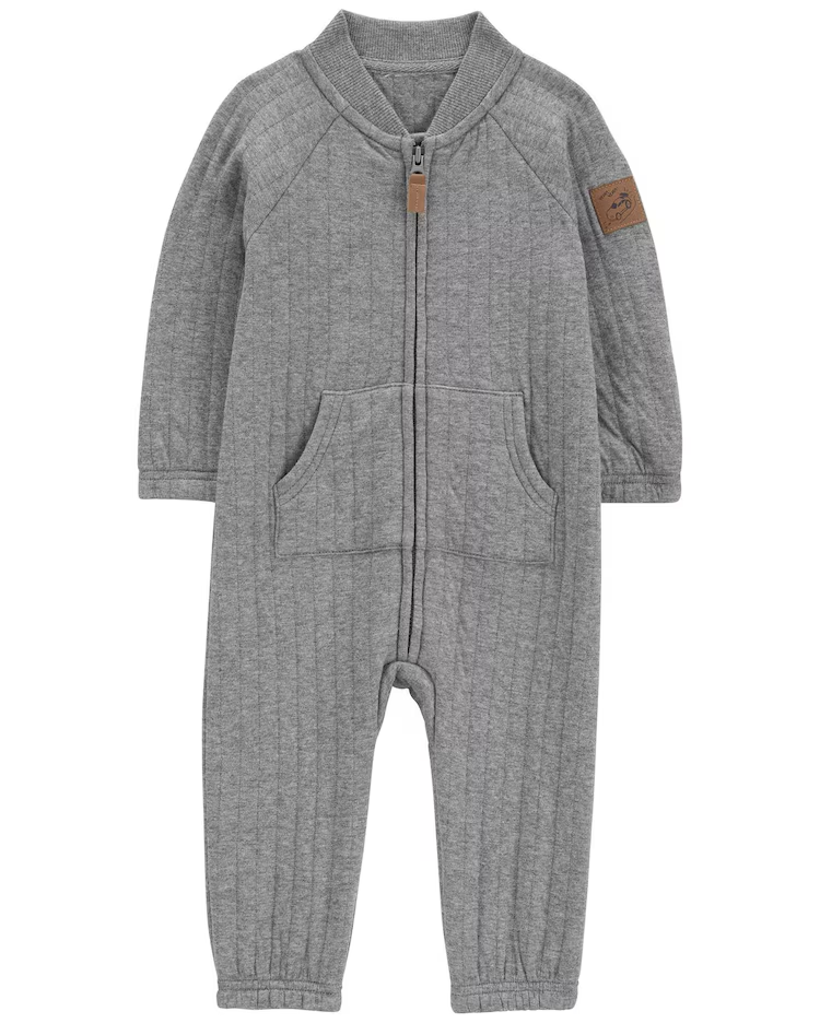 O Macacão bebê bolso canguru mescla cinza | Carter's é confeccionado em material macio e aconchegante, com zíper frontal, mangas longas, gola redonda e super confortável. É ideal para todos os momentos! O modelo esbanja fofura e delicadeza, invista, sua baby merece.