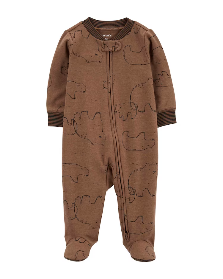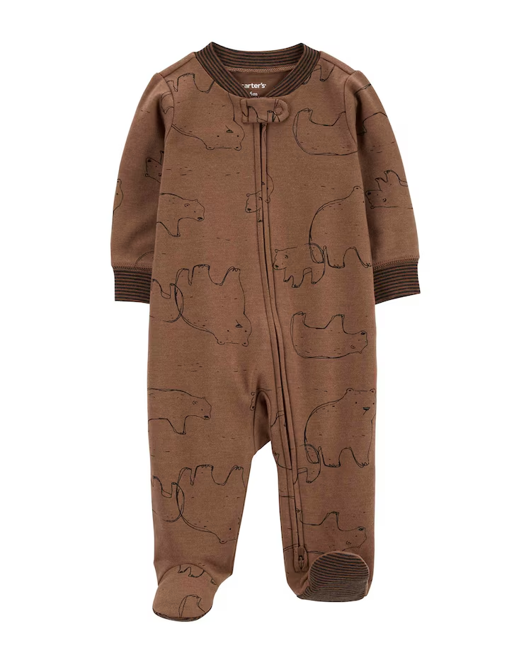 O Macacão bebê ursos marrom | Carter's é confeccionado em material macio e aconchegante, com fechamento por zíper inverso, mangas longas, martingale, gola redonda, pezinhos e estampa de urso. O modelinho esbanja fofura, além de ser ideal para todos os momentos. Invista, o seu baby merece!