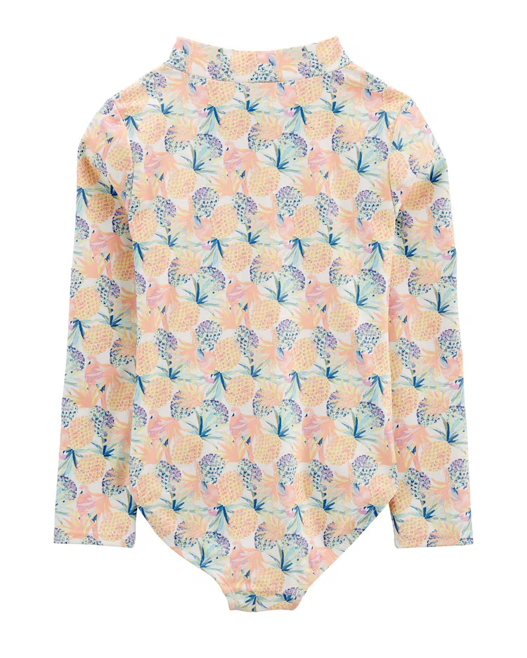 Momentos em família são únicos, fofos e serão lembrados para sempre. A sua princesa vai amar o Maiô infantil manga longa abacaxi rosa | Carter's. Perfeito para curtir a praia e piscina, o maiô é feito de poliéster e elastano, possui modelagem tradicional, manga longa e seu charminho está na estampa de abacaxi. Aproveite!