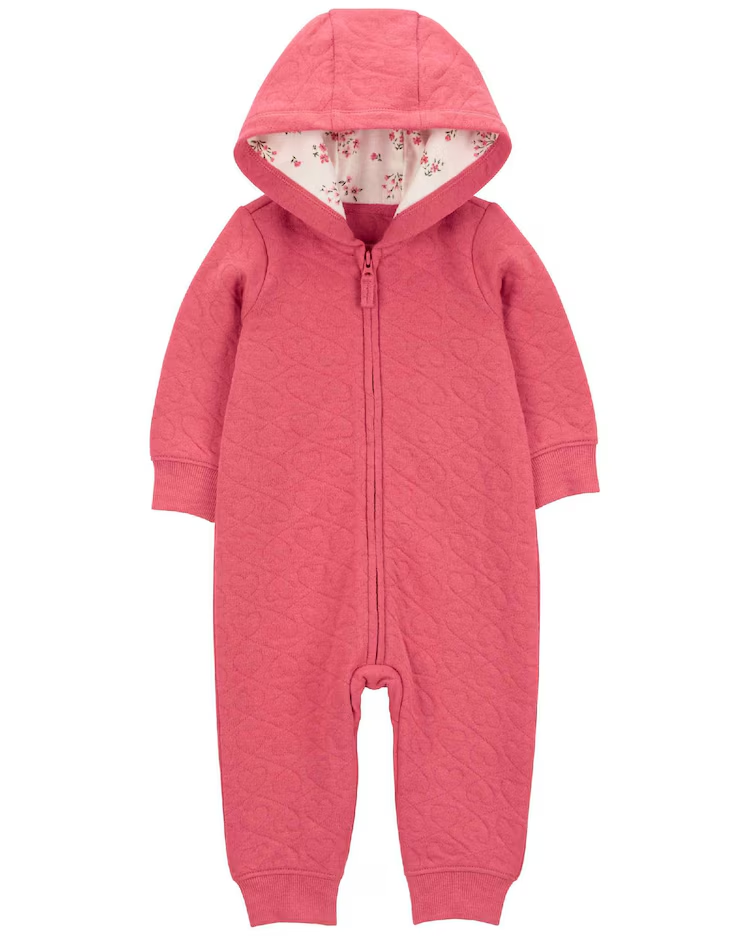 Nós sabemos como é importante ter peças práticas, funcionais e lindas para os primeiros meses de sua baby. Por isso, trazemos o Macacão bebê com capuz matelado coração rosa | Carter's para que ela aproveite o dia todo, de forma segura e confortável. Confeccionado em material macio e aconchegante, a peça possui zíper frontal para facilitar na hora da troca de fralda. Possui mangas longas, acabamento em ribana canelada, capuz e matelado no formato de coração. É ideal para aqueles dias mais frios, além do modelo esbanjar fofura e delicadeza. Invista!